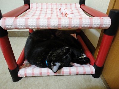 ヒメちゃん、お気に入りのベッドが出来て良かったね。