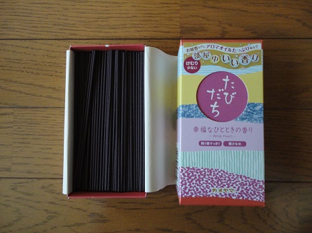 ヒメが亡くなってからずっと使っているお線香をご紹介しておきます。「カメヤマ たびたち 線香 幸福なひとときの香り White Peach」