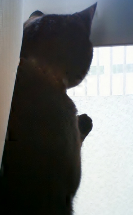 vetz地方は豪雨&カミナリでした。雨が我が家のバルコニーの手すりに当たってカンコン・カンコンと大きな音を立てていたので、すかさず『ヒメちゃん』も窓から様子をうかがっていると・・・