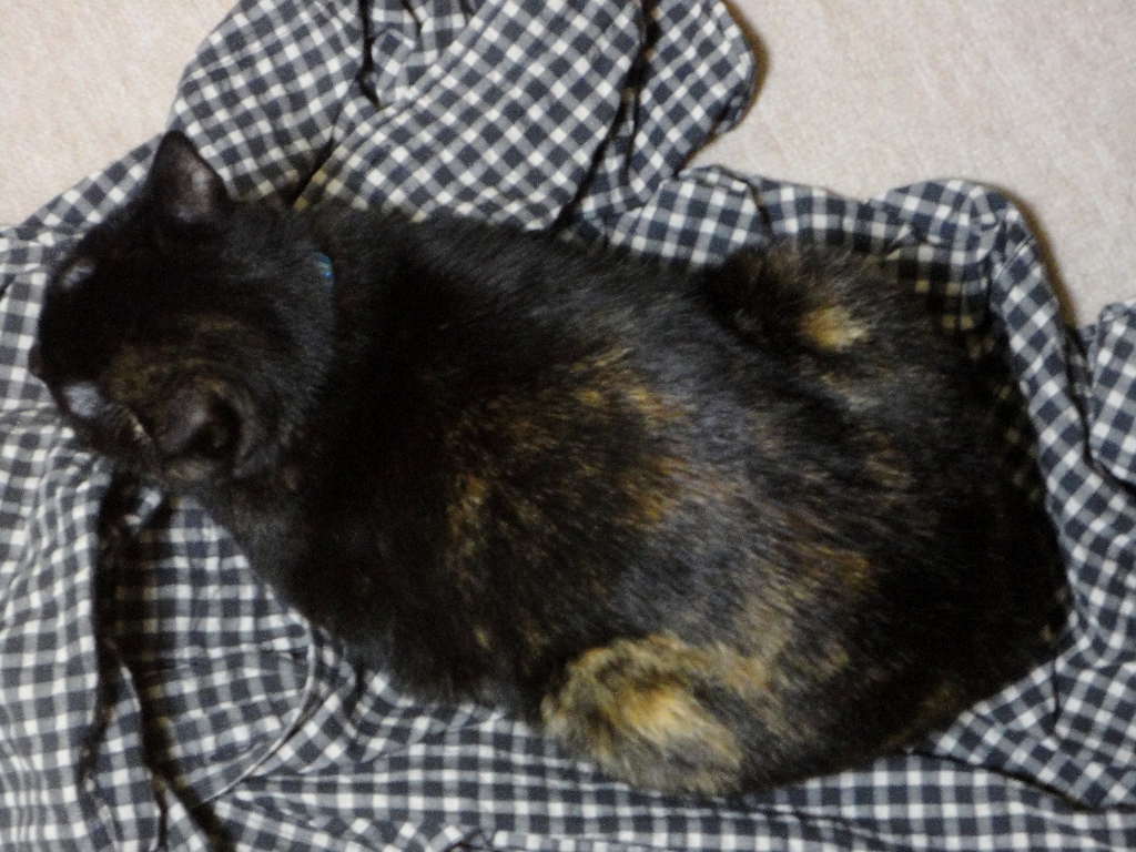 着ていたシャツを「脱ぎっぱなし」にして、床に放っておいた私も私ですが・・・ヒメちゃん、他にももっといいくつろぎ場所あるんじゃないの?!