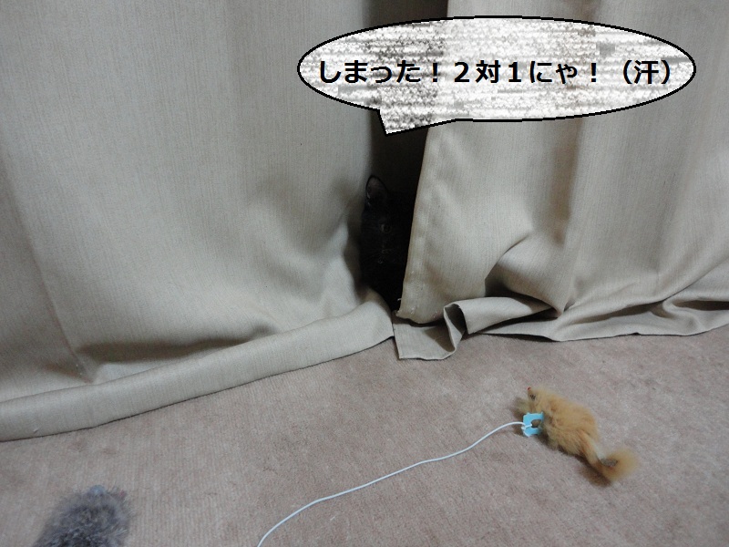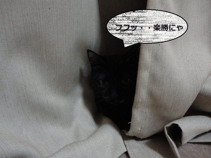 カーテンに隠れて獲物を余裕で狙っていた(ハズ?!)の