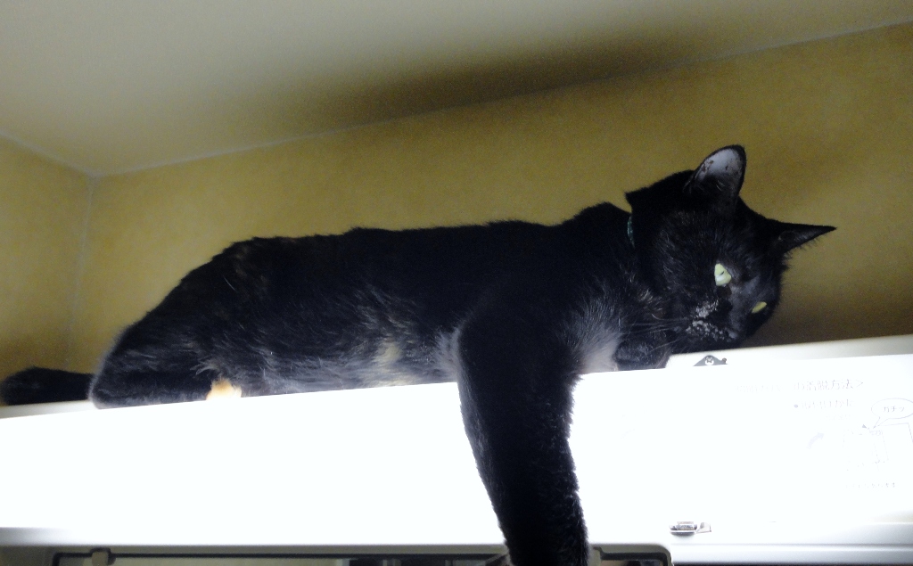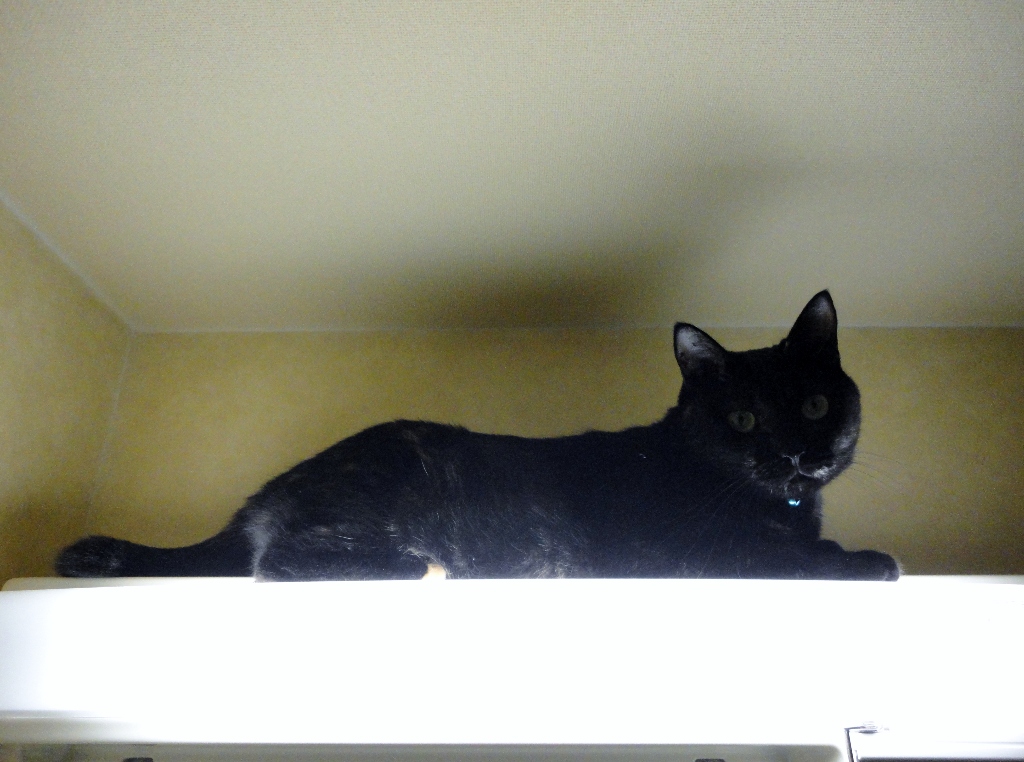 ヒメちゃんは、やっぱりネコだから・・・高いところが大好きなのはわかるけど、その場所はちょっとやめて欲しいなあ・・・