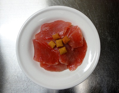 さて・・・私からヒメへは定番のマグロを!