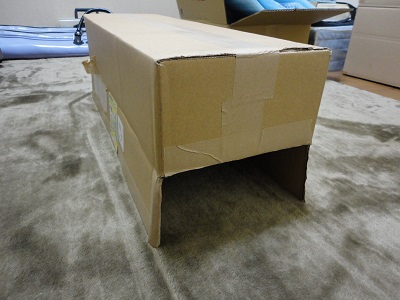 ウチもみやっちは、段ボール箱をつぶそうと、横にすると
