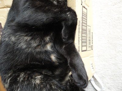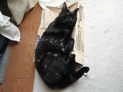 ヒメちゃんは必ず ダンボールがベッドになってるようなきがします~