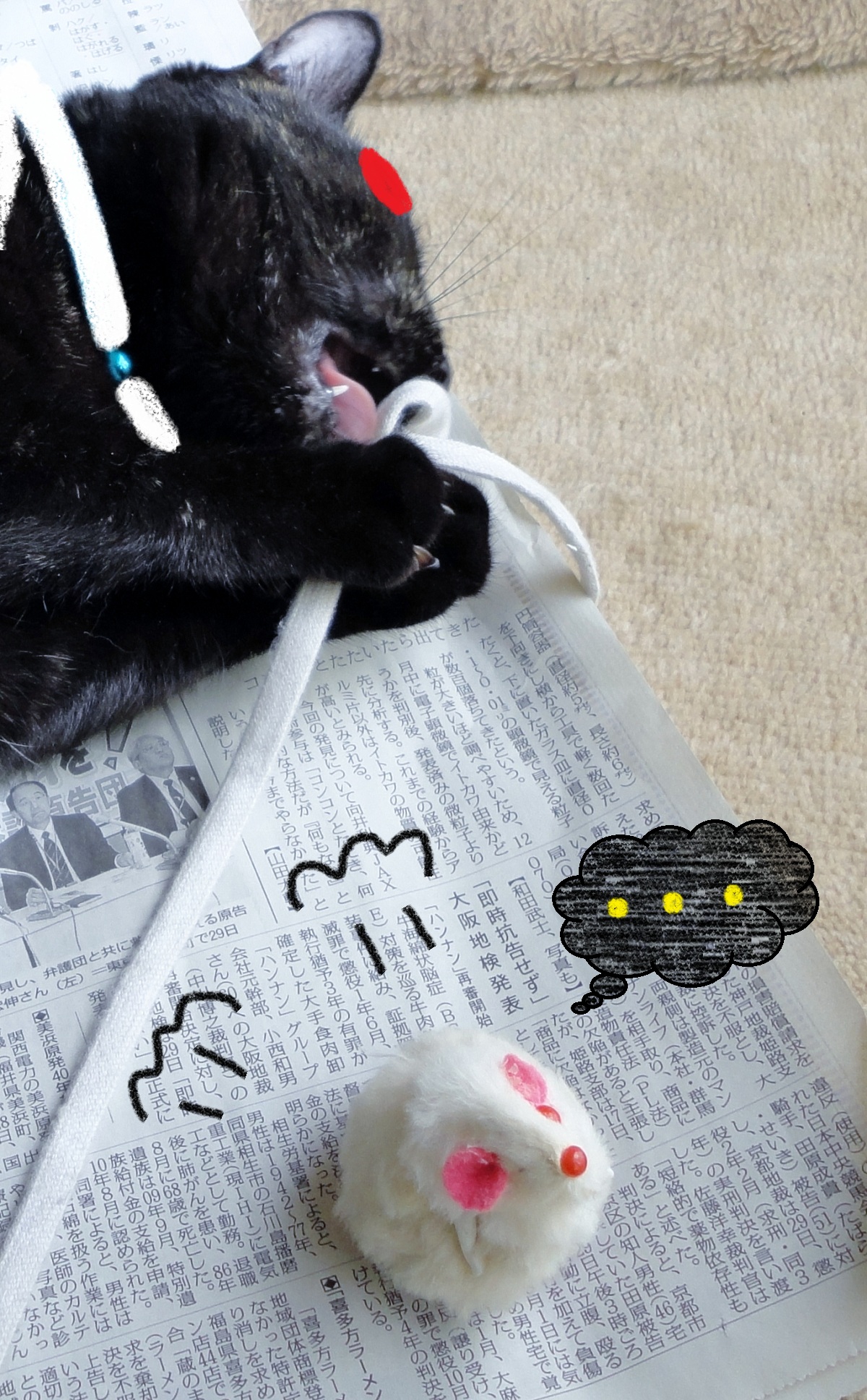 仮面ニャンダーはネズミンガーに大喜び、