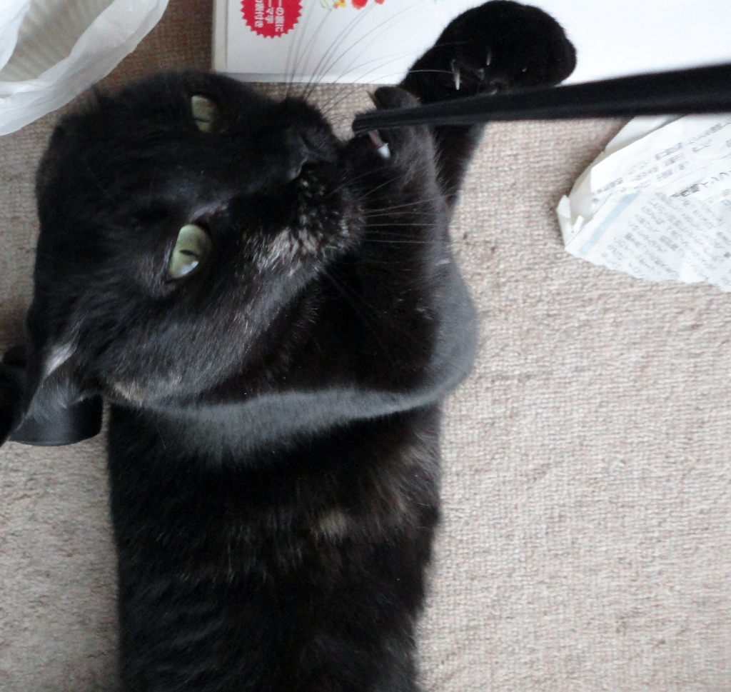 デジカメのストラップに猫パンチ&噛みつく&爪でひっかけ引っ張る!!
