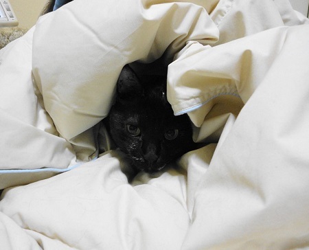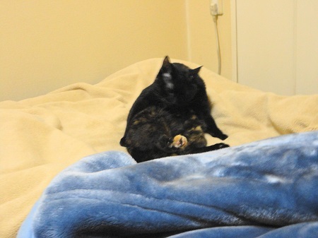 この日も布団(毛布の上)の