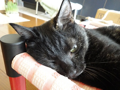 ぐったりだねぇー。この時期猫ちゃんたちはみなさん、こんな感じだよね!