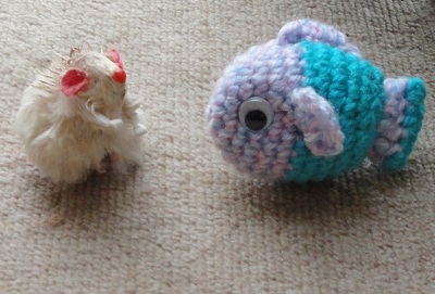 (写真左:ネズミンガ―・白&写真右:魚ぎょっとにゃ1号)