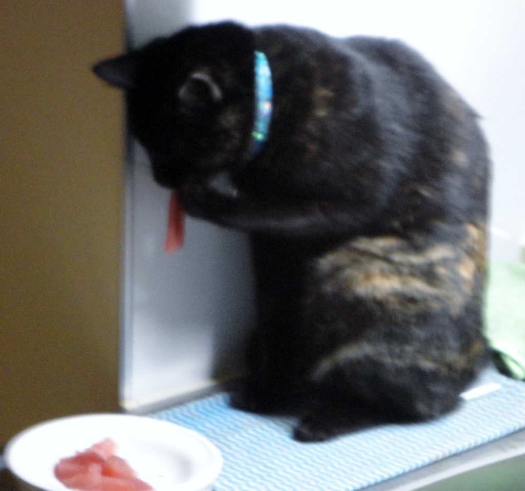 猫の日でしたね♪♪(^^おててを使って食べるのも
