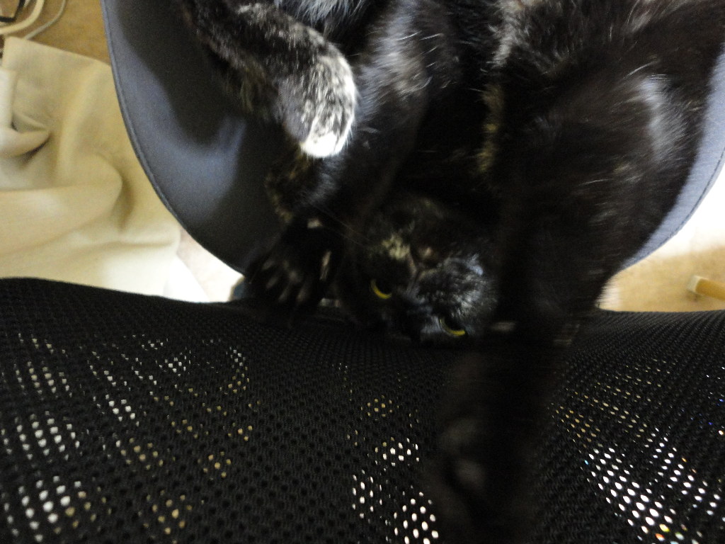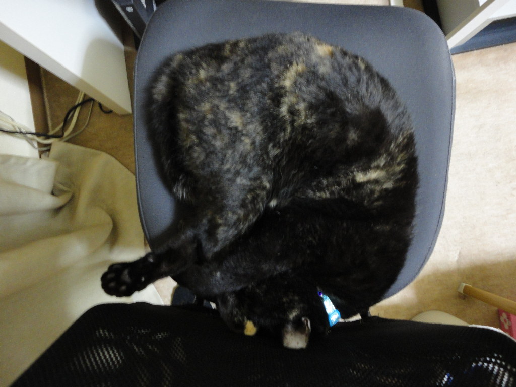 PCデスクのイスに座ろうと思ったら・・・先客が