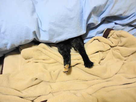 爪を立てて毛布モミモミしてから掛け布団に潜り込んだ!ってところかしら?(笑)