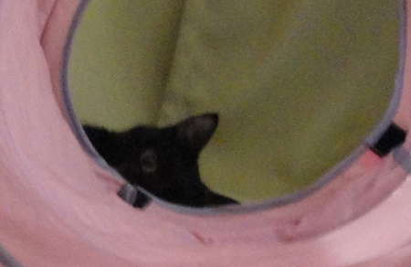 シャカシャカトンネル(猫のおもちゃ)の前で