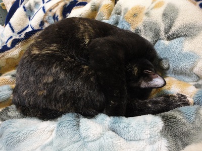 ヒメちゃんは毛布の上で瞑想中?!