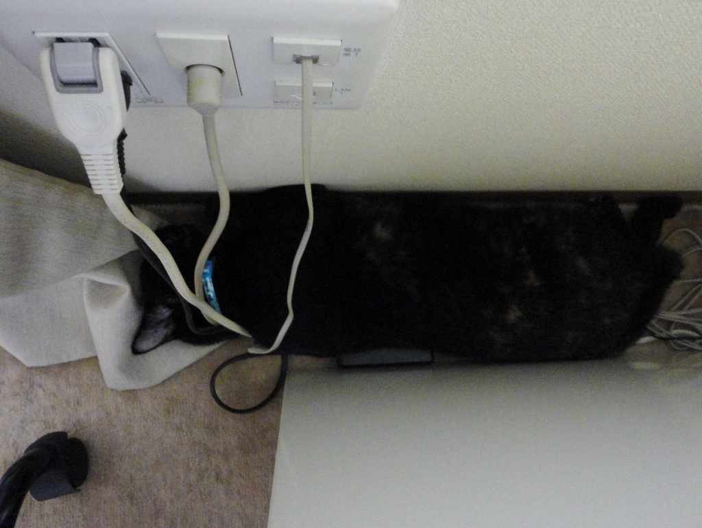 ヒメちゃん、寝ちゃいまいた!しかし、なにもPCデスクと壁の狭いところでわざわざ寝なくても・・・(笑)