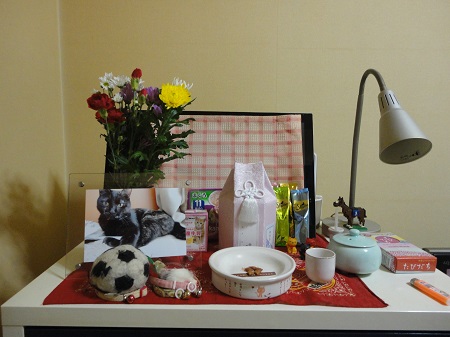 昨晩(9/26)撮影。お彼岸ということで、24日の祝日に、母が買ってきてくれたお花を月命日にもそのまま飾っています。ヒメがいなくなってから4カ月・・・、まだまだ悲しみや寂しさはなくなりませんが、以前より気分的に少し落ち着いてきたような気がします。